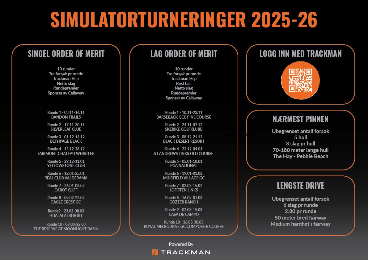 Alle må ha Trackman hcp for å delta på turneringene.